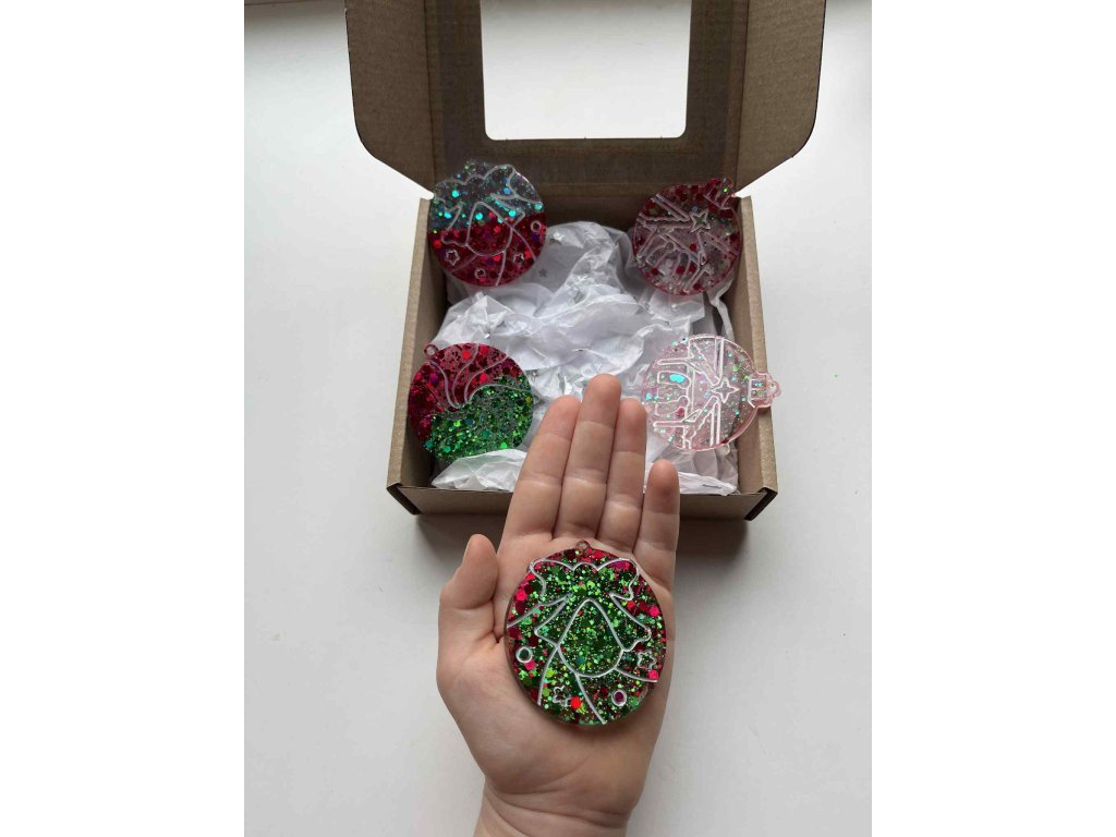 5 kusů v dárkové krabičce či bez. Mají očko na zavěšení.