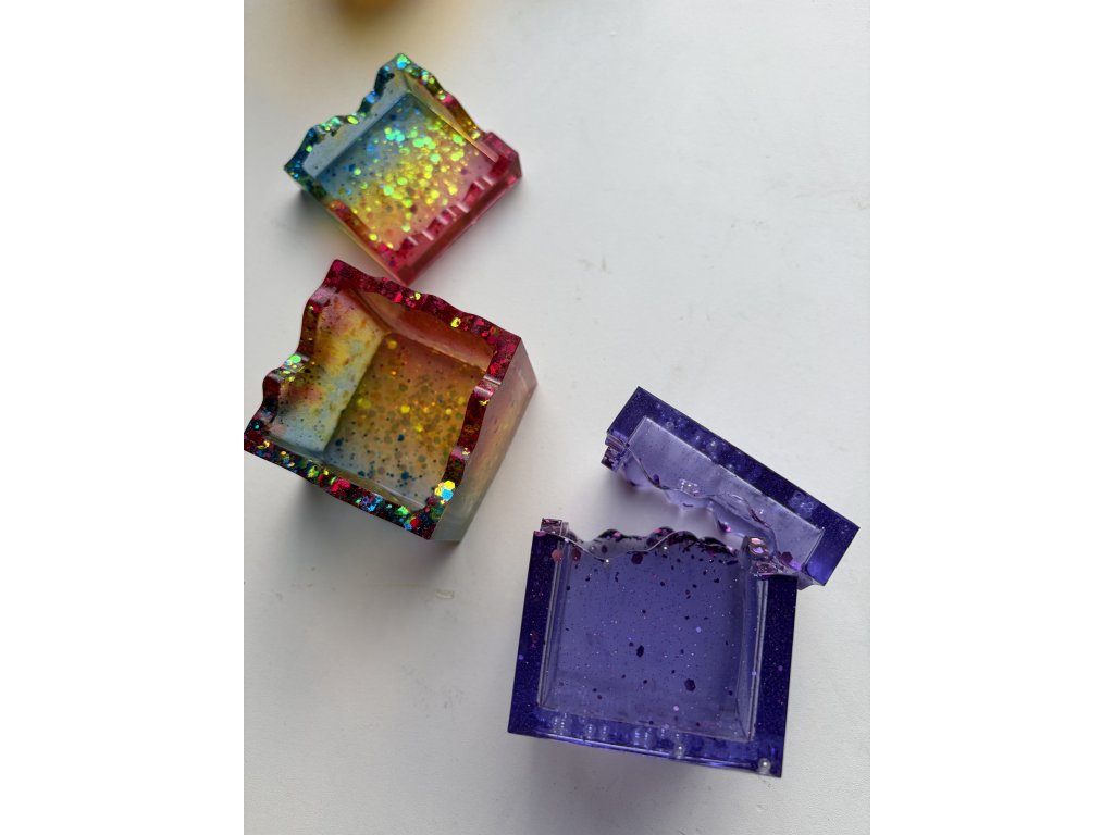 Velikost zavřené krabičky z pryskyřice cca 6,5 x 6,5 cm.