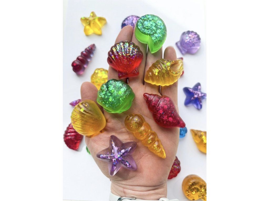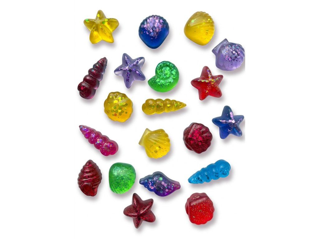 Velikost mořských miniatur z pryskyřice je cca 3-5cm. V sadě je 8 rozdílných kusů. Barvy náhodné.
