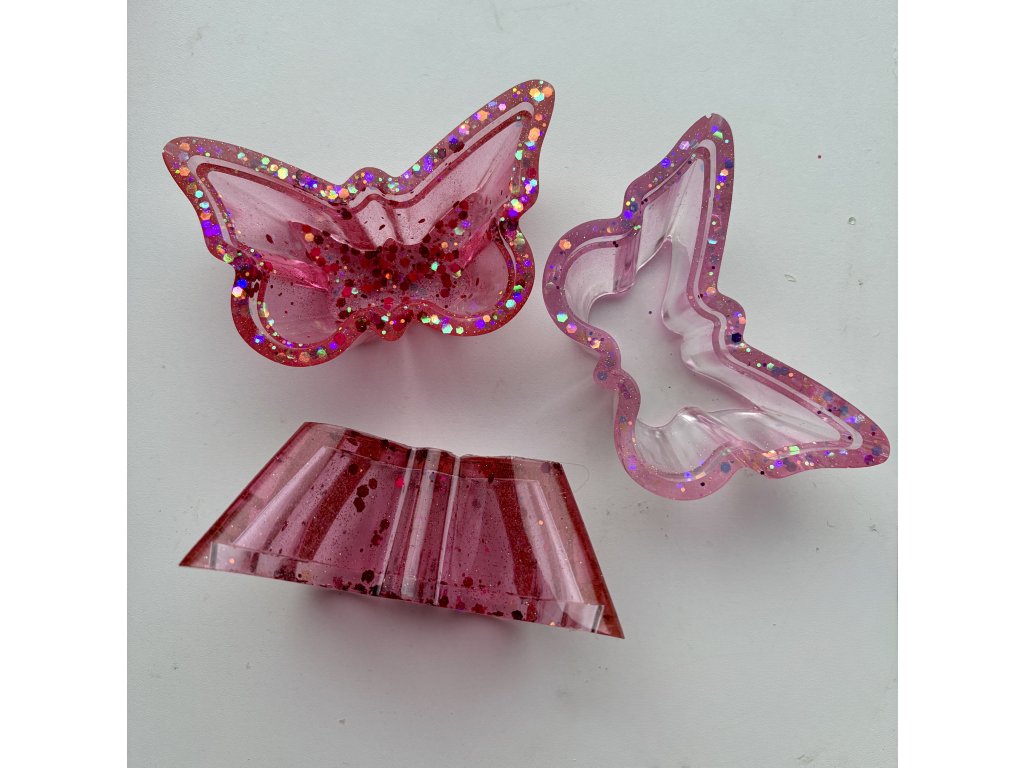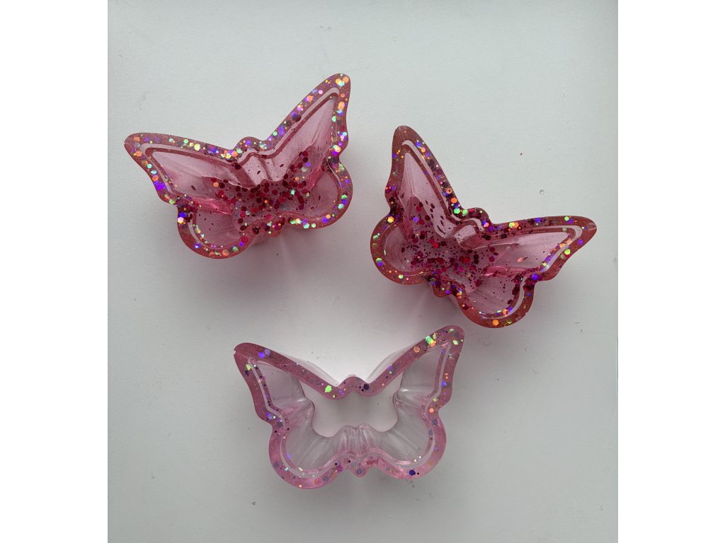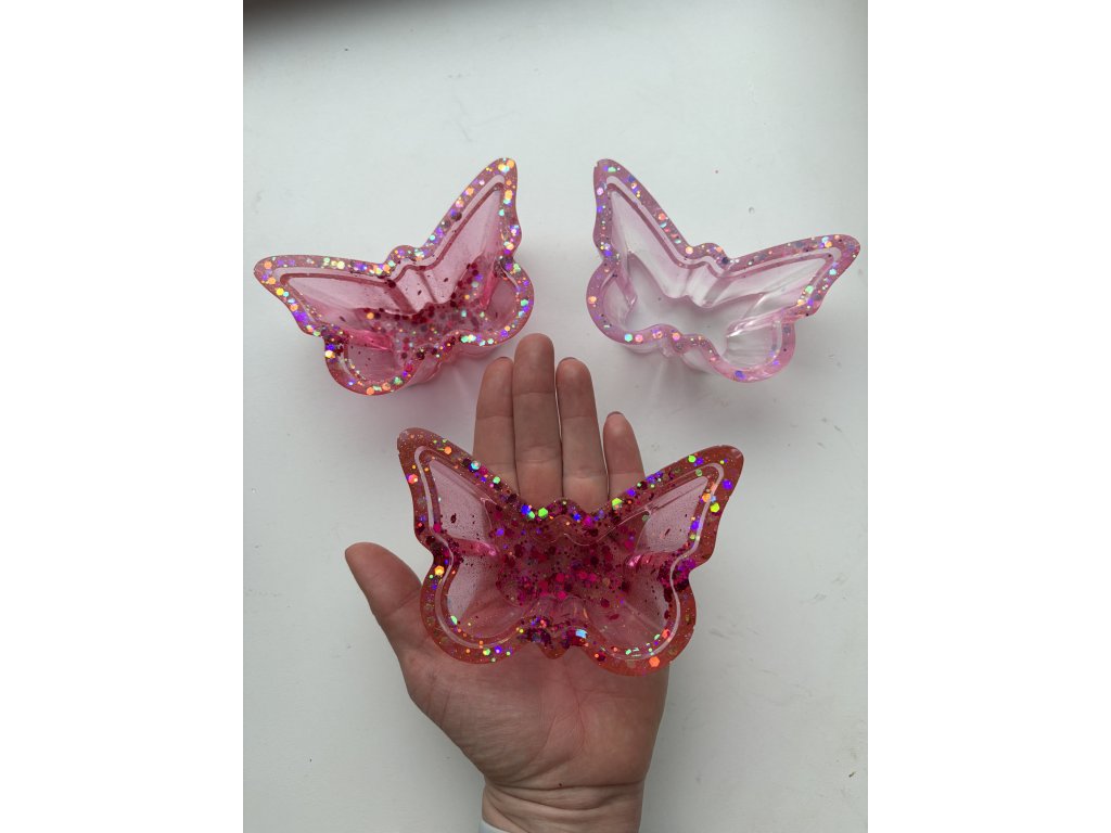 Motýl z pryskyřice o velikosti cca 11,5 x 7 x 4,5 cm.