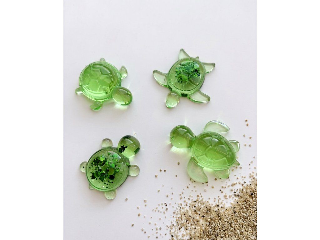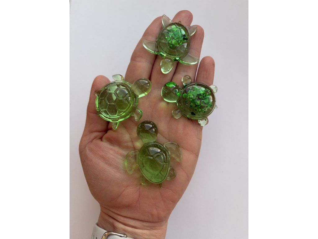 Sada čtyř želviček z pryskyřice ve velikosti 4,5-5 cm.