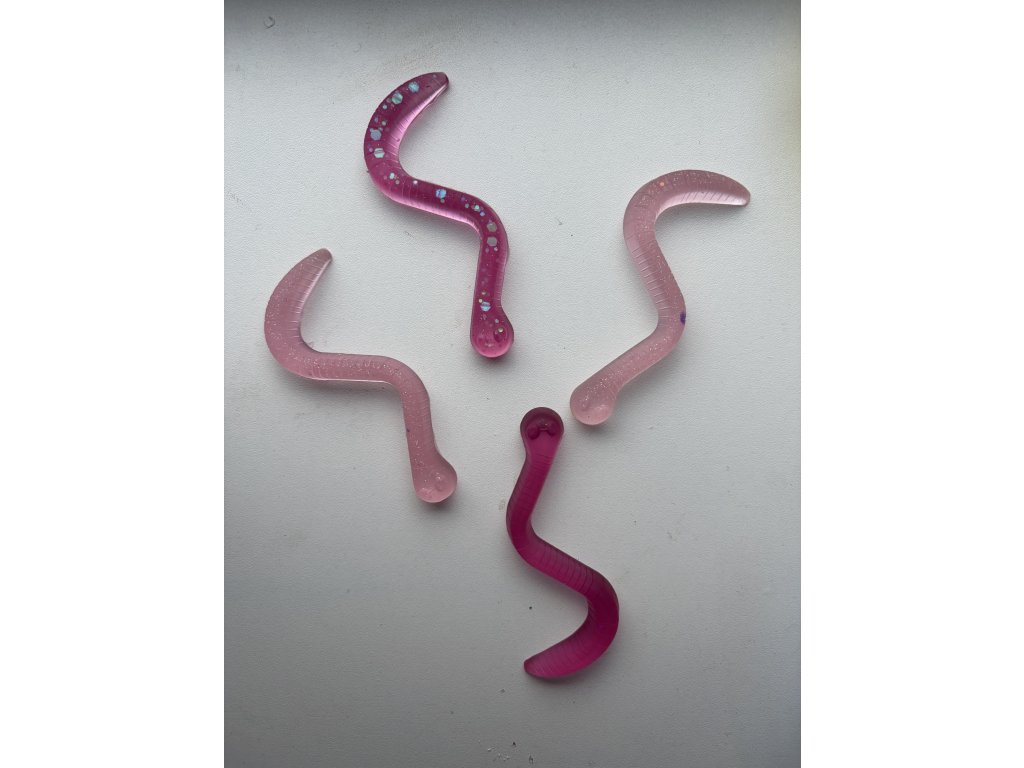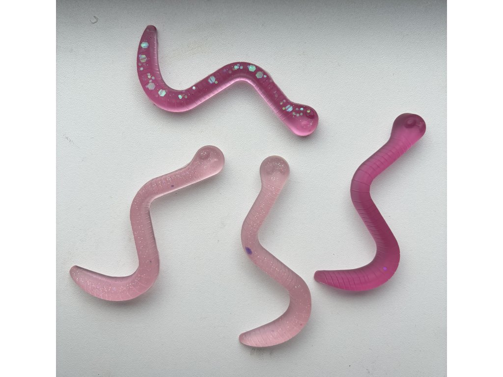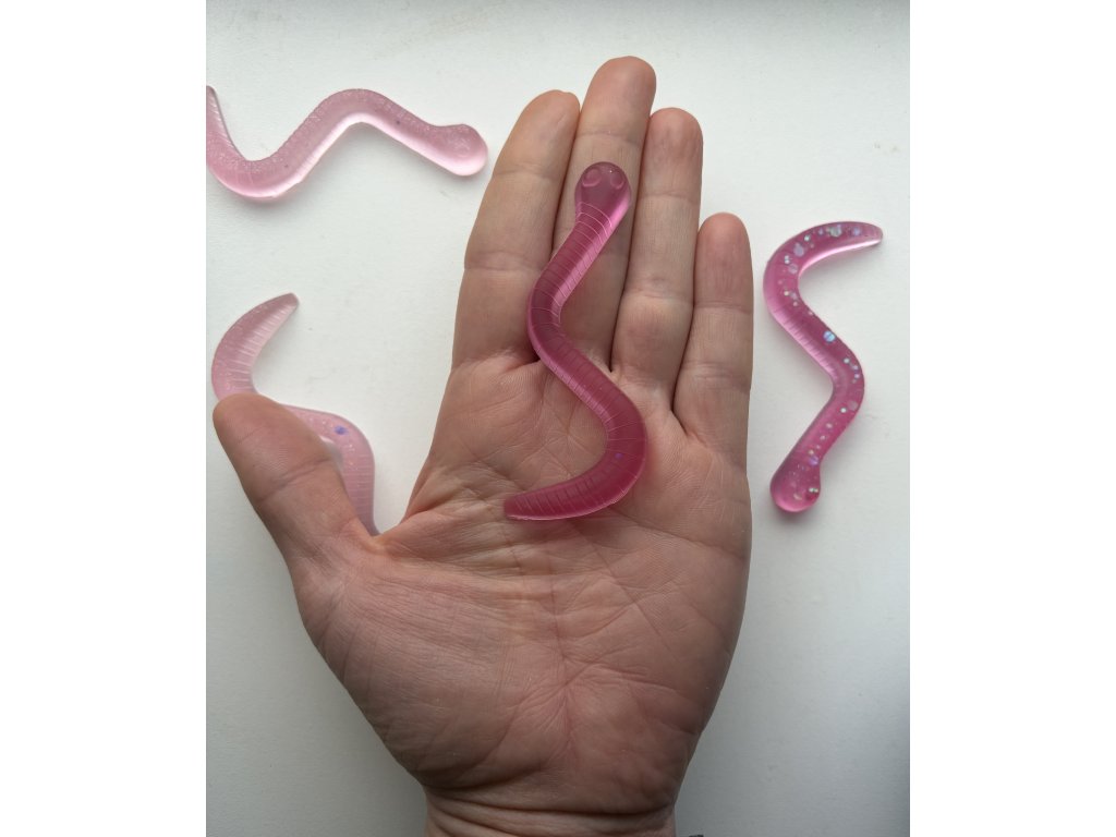 Velikost žížaly z pryskyřice cca 8 x 0,8 cm.